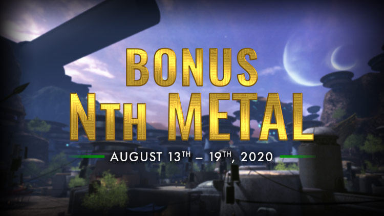 Play more - get more. All week, your chances to receive Nth Metal as drops when defeating enemies is doubled! This means whenever you trigger an opportunity to get Nth Metal from enemies, that opportunity will fire off twice. The special bonus is available through August 19, 2020.