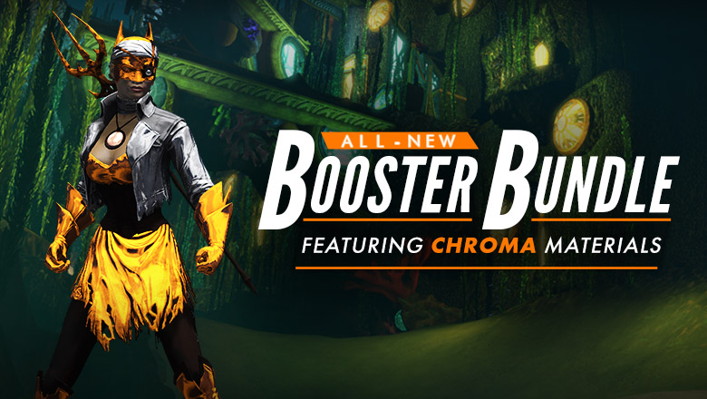 The Booster Bundle returns with the most-needed marketplace convenience items and the new Booster Reward Box. The Booster Reward Box will reward one of seven new Auras OR one of six packs all-new Chroma Materials. Chroma Materials allow for preset color customization on the different channels of gear colors, and each pack comes with three variants of the same color palette. Details below!