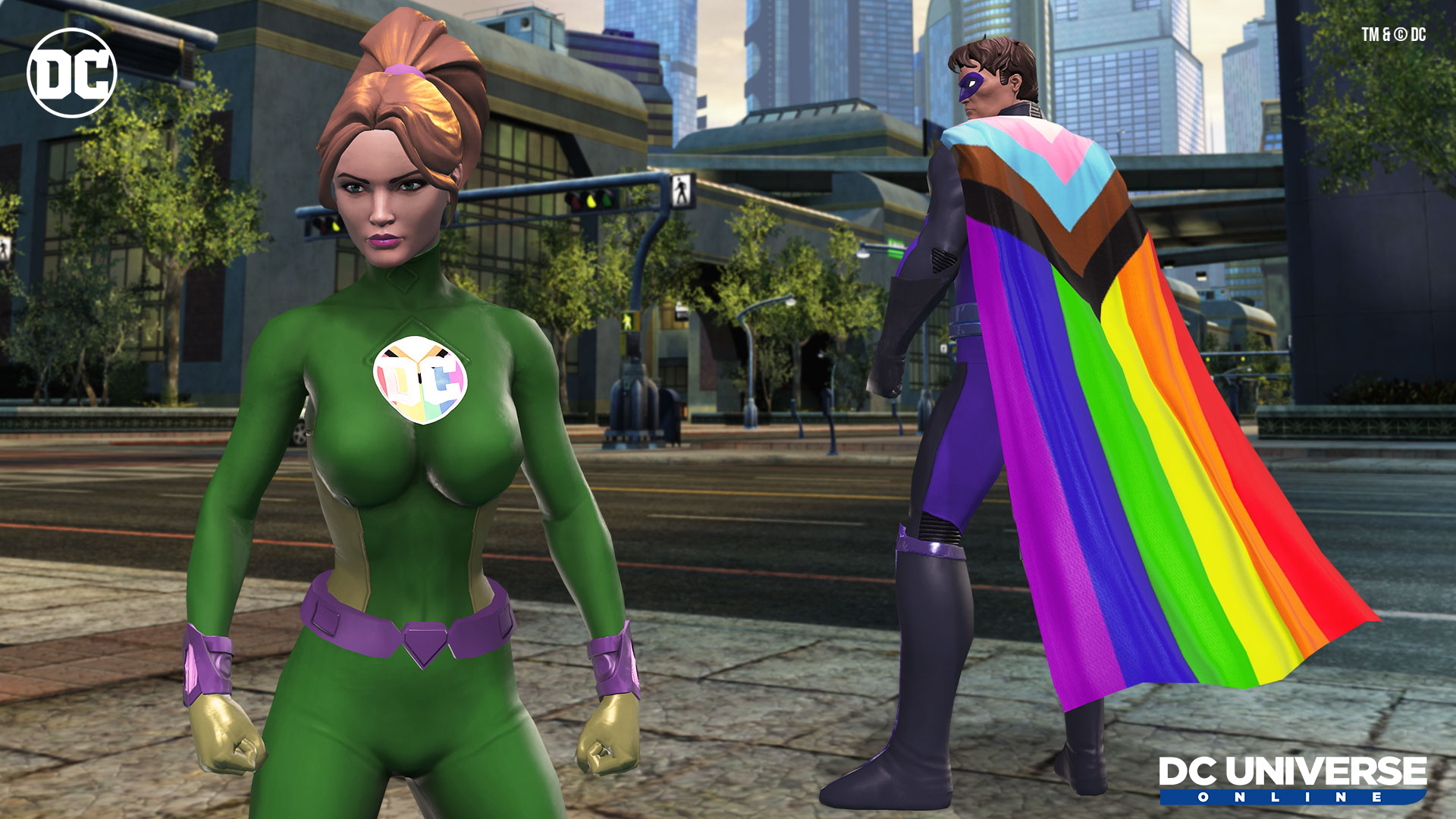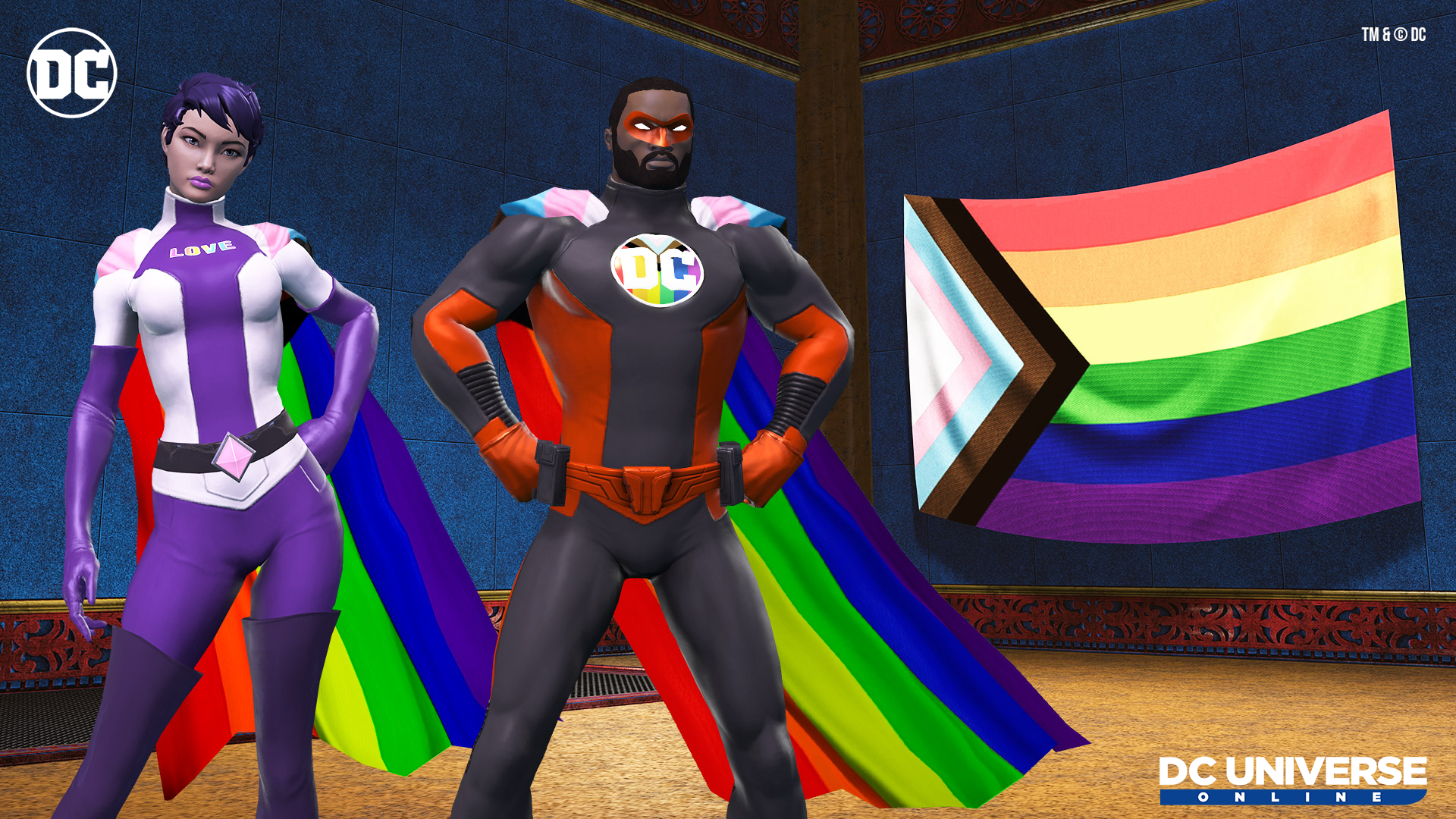 The DCUO Team is happy to celebrate Pride Month with these free gifts! Express your pride or show your support with Progress Pride Flag, Pride Flag, Pride Cape, Pride love Emblem, DC Pride Logo Emblem & Enhanced DC Pride Logo Emblem.