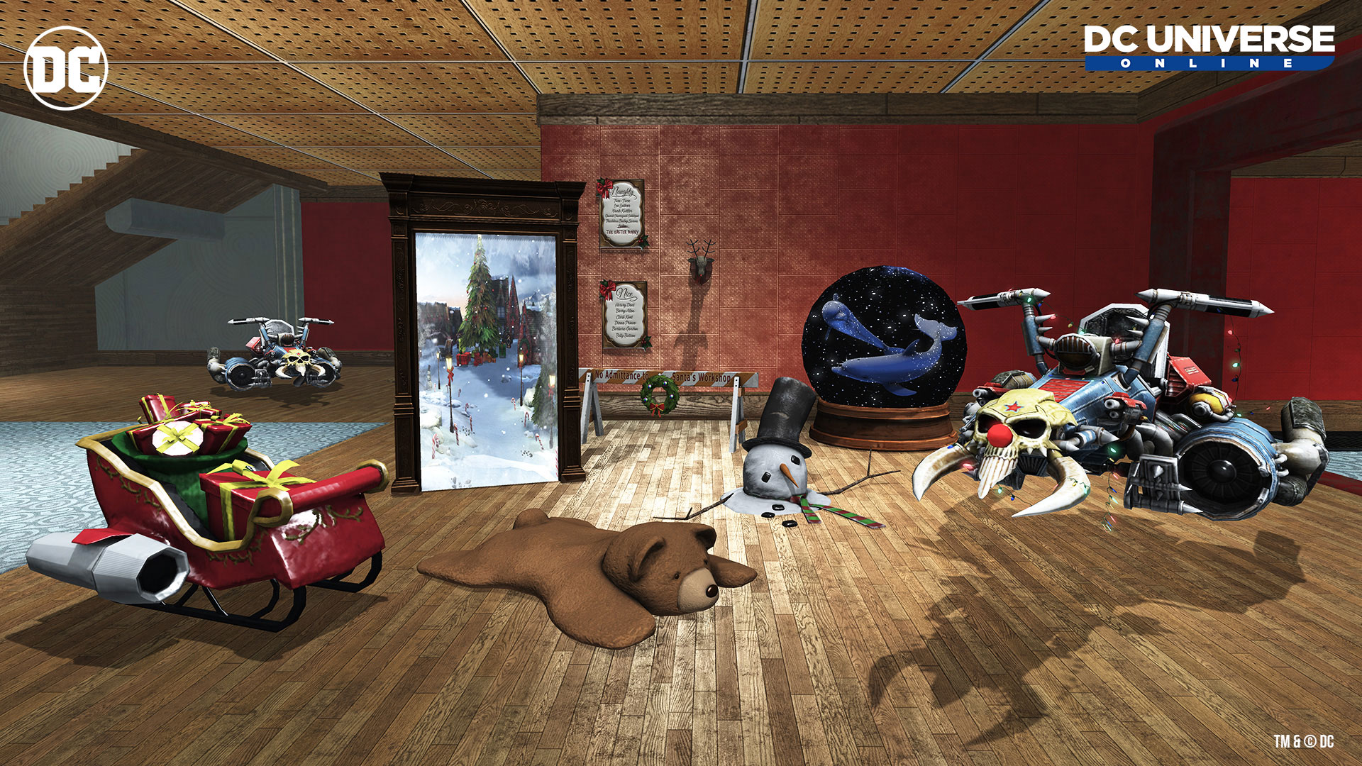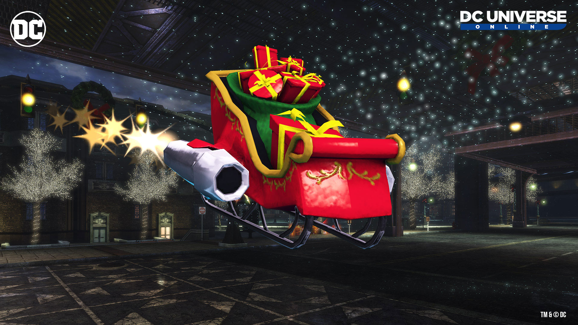 Larfleeze is back! Find and recover the stolen gifts in Metropolis and Gotham City before it’s too late! Look for “Yuletide Fear” (Villains) or “Winter Plunderland” (Heroes) in your Mission Journal. Or alternatively you can now use the Warp Menu to head directly to the Watchtower or Hall of Doom by selecting Season’s Greedings: Hal Jordan (Hero) or Season’s Greedings: Sinestro (Villain). There are also wondrous new feats to be found, along with style items and accessories to be earned!