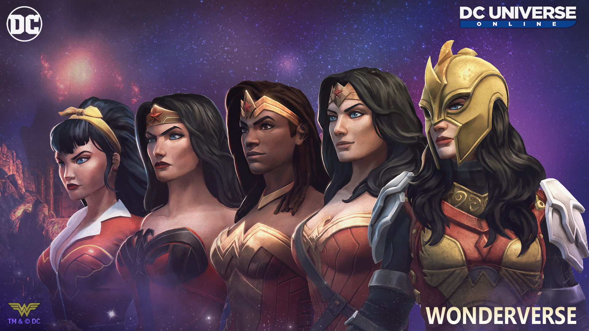 Wonderverse features five different versions of Wonder Woman from other universes: our Wonder Woman, Flashpoint Wonder Woman, Nubia, DC Bombshells Wonder Woman, and Red Son Wonder Woman.
