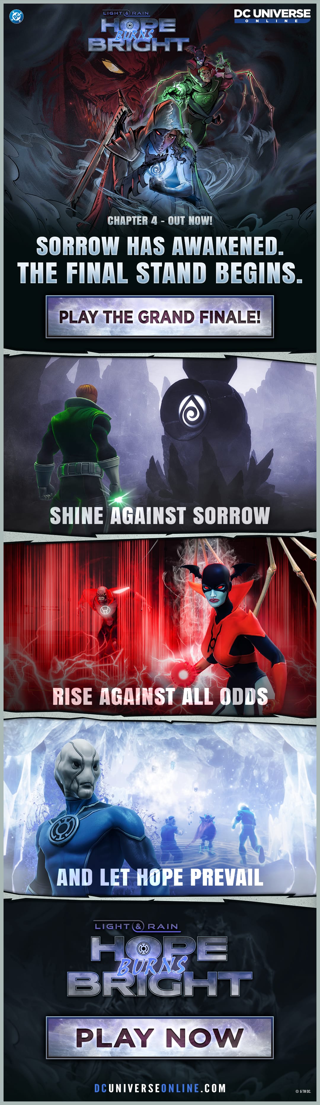 Stand with the Lantern Corps as hope and will clash against rage and despair. The future of Mogo and the emotional spectrum itself depends on you.