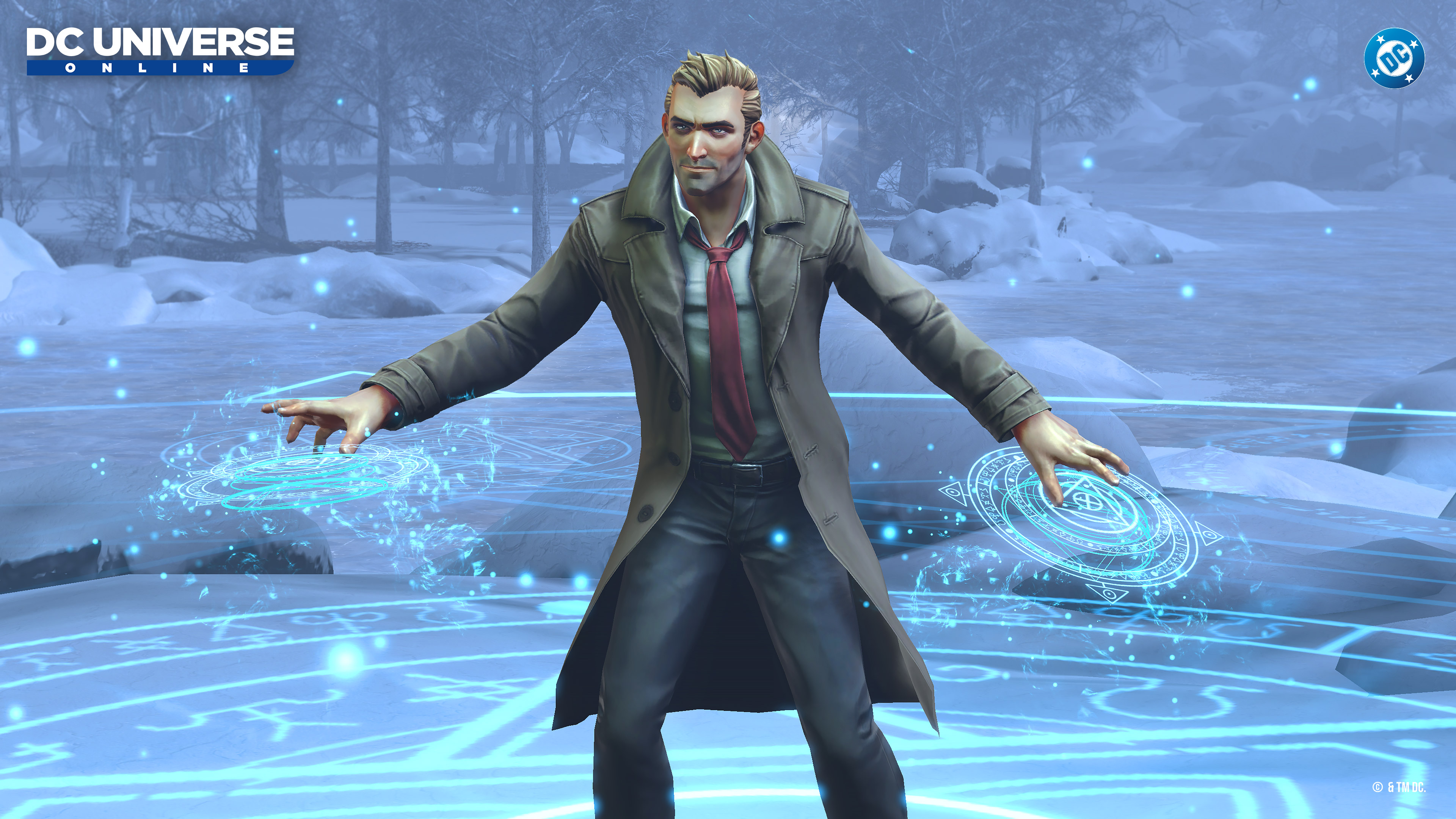 Constantine conjures a mystical Ward of Zauriel, surrounding himself in a protective zone that enhances allies and punishes enemies.